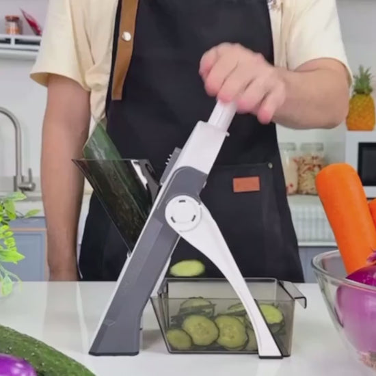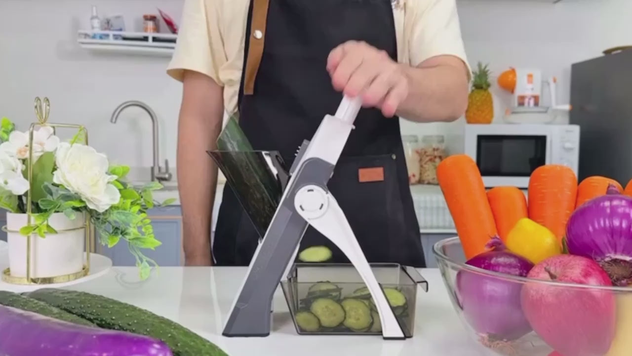 Designed for everyday cooking and meal prep, this adjustable mandoline slicer offers up to 30 different cutting styles, making it perfect for salads, stir-fries, fries, chips, and more.